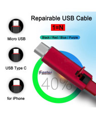 Зарядный кабель, как правило, вещь не очень долговечная. Даже при аккуратном использовании, его легко сломать в месте соединения шнура с коннектором. По заявлению производителя кабель Reborn прослужит очень долго. Главная особенность провода – разборный коннектор с ножевым механизмом, который обеспечивает надежное соединение кабеля с группой контактов коннектора. Если провод перестанет работать, Вы сможете починить его своими руками. Для этого необходимо будет сделать всего три действия: