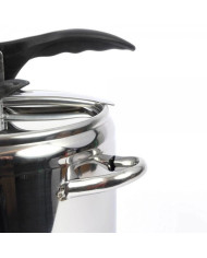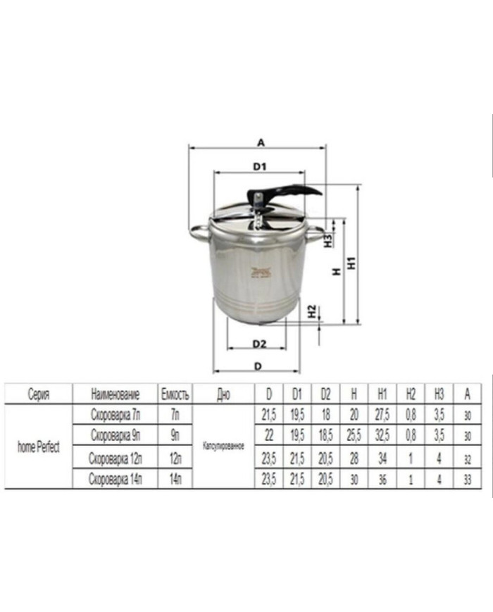 Скороварка Home Perfect 5л. выполнена из высококачественной нержавеющей стали и оснащена капсульным дном, обеспечивающим равномерный нагрев и длительное сохранение тепла. Скороварка является незаменимым помощником в приготовлении первых и вторых блюд. Приготовление пищи в скороварке имеет массу преимуществ по сравнению с обычными способами варки в кастрюле. Время приготовления значительно сокращается, так как процесс происходит при повышенном давлении. При приготовлении пищи в скороварке сохраняется первоначальное количество жидкости - не происходит выпаривания. Герметично закрывающаяся крышка, благодаря которой пар выходит наружу только через клапан, поддерживающий повышенные давление и температуру внутри скороварки, практически не позволяет запаху распространяться. Посуда функциональна и практична в использовании. Подходит для использования на всех типах плит, включая индукционные. Подходит для мытья в посудомоечной машине.